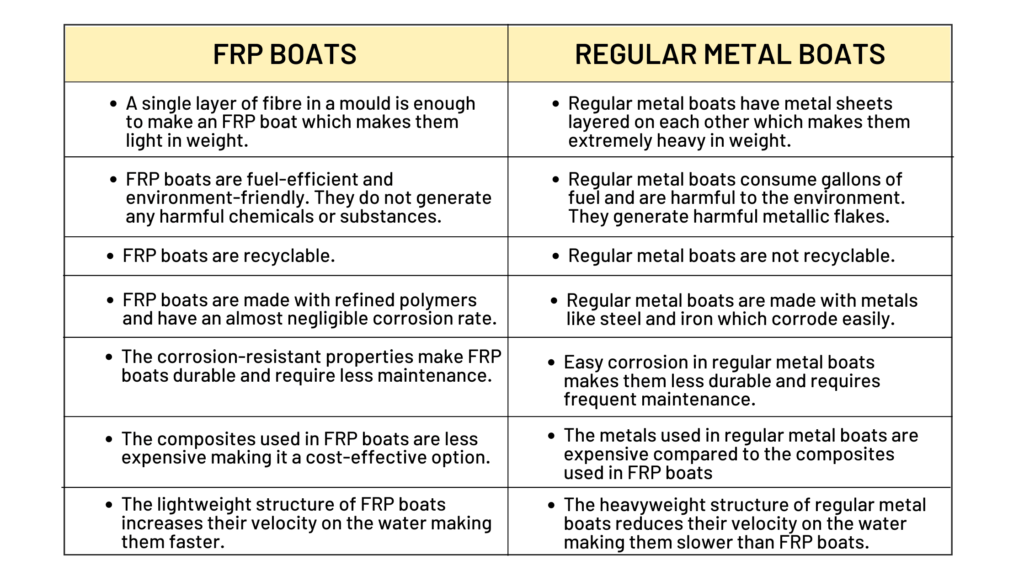 Regular boat maintenance is the key factor that affects the efficiency, functioning and durability of a boat. Over the last few years, FRP boats have become much preferred to other widely used boats. Due to their versatility, durability and ability to resist corrosion, they are more affordable for prolonged use. The government of India has encouraged using FRP boats due to their environment-friendly features like less fuel consumption.